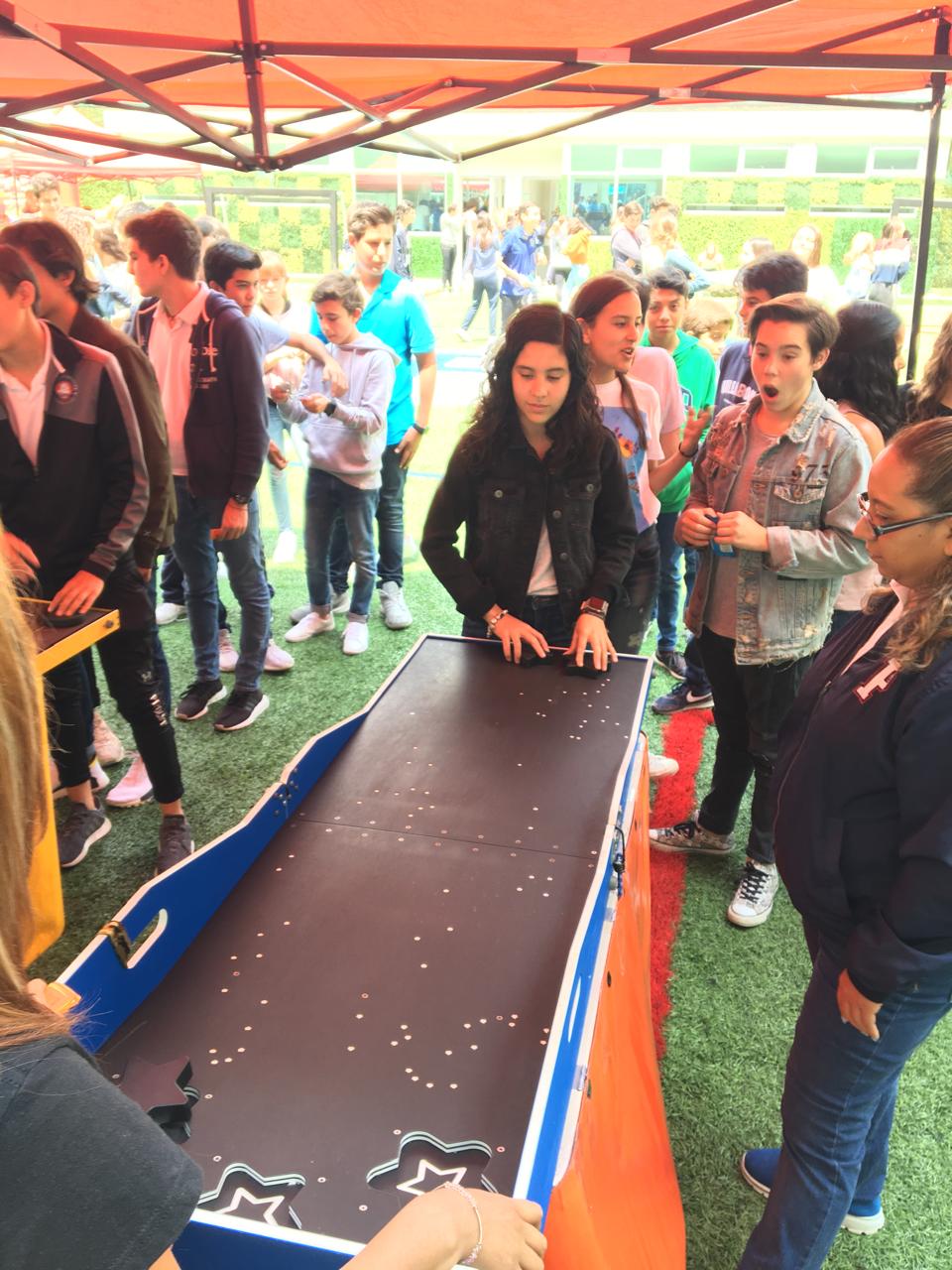 Desliza las fichas con forma de estrella por la pista intentando que patinen con la velocidad perfecta para caer dentro de los agujeros estrellados al final del tablero. El primer jugador que logre meter 2 estrellas en solo 5 intentos se corona como ganador de esta competencia estelar. Un juego de control y precisión donde calcular la fuerza exacta del deslizamiento determina si tu estrella fugaz alcanza su destino o se pierde en el espacio.