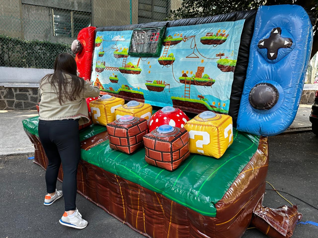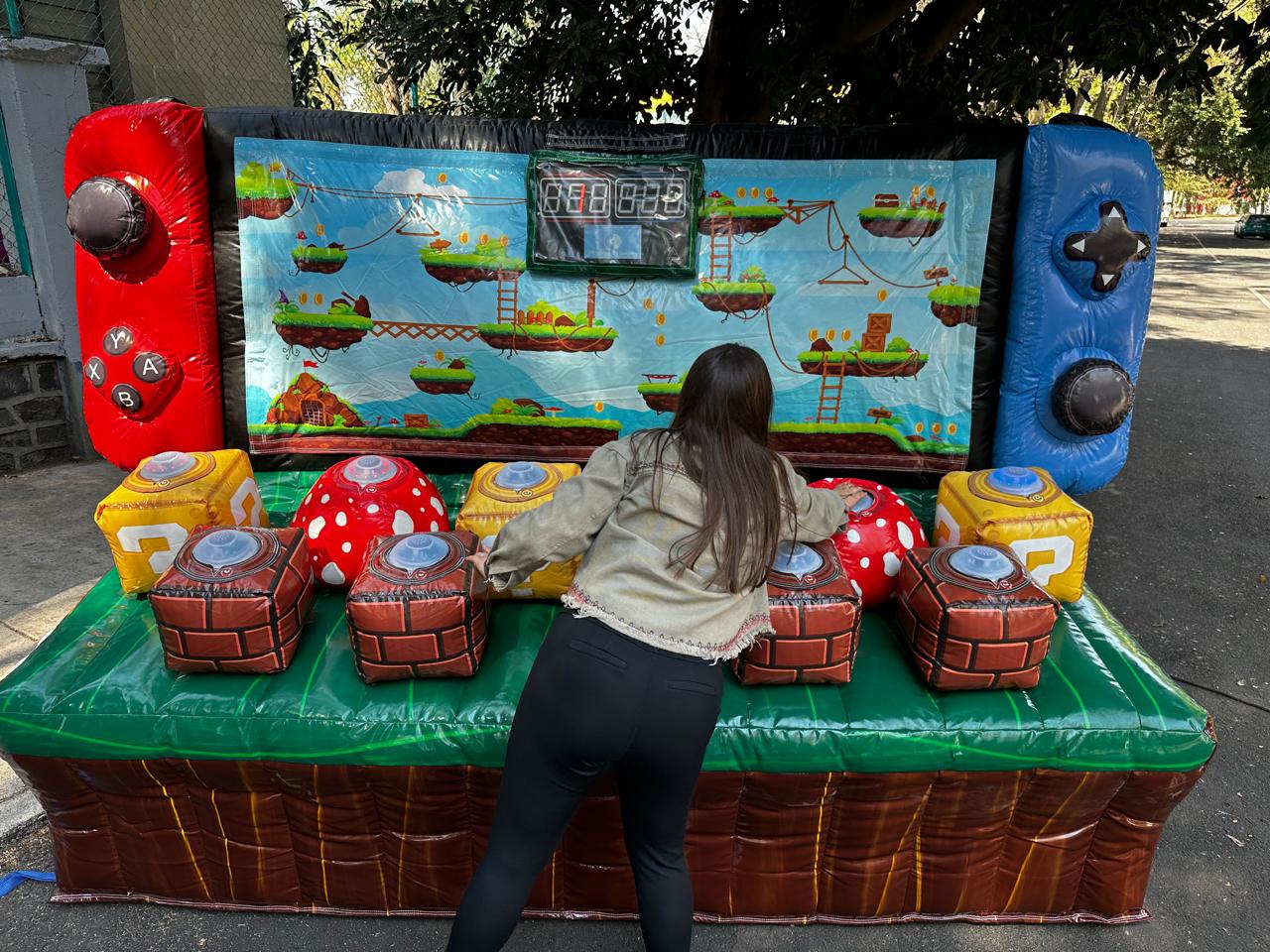 Golpea los botones inflables gigantes en este juego de consola supersized cuando se iluminen, compitiendo para ver quién tiene los reflejos más rápidos. Los botones temáticos incluyen cubos de pregunta, bloques de ladrillo y hongos que debes golpear en el momento exacto que indica el sistema electrónico. Con 4 modos de juego diferentes, cada ronda aumenta en velocidad y complejidad, convirtiendo la competencia en una batalla frenética de reflejos y concentración.