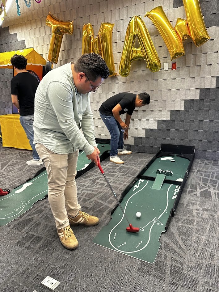 2 Participantes deberan de lograr meter la bola de golf en el orificio en 3 intentos…el primero que lo logre…¡Gana!