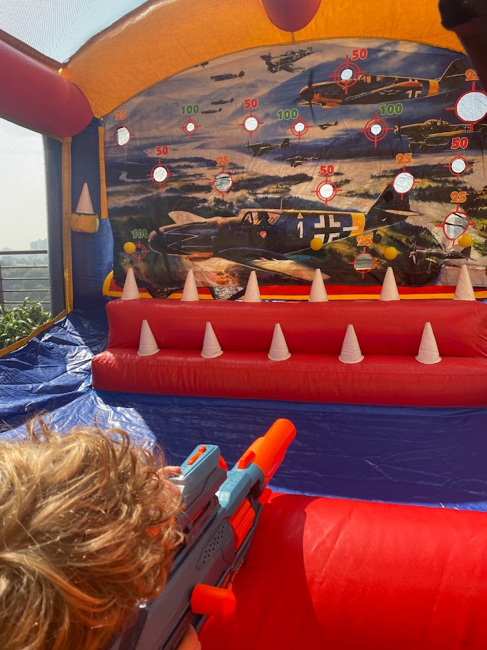 Dispara con pistolas NERF a los blancos inflables que tienen diferentes valores de puntos según su dificultad. Compite contra otros jugadores para ver quién acumula el mayor puntaje acertando a los objetivos más complicados. Una prueba de puntería y precisión donde cada disparo cuenta para coronarte como el mejor tirador.
