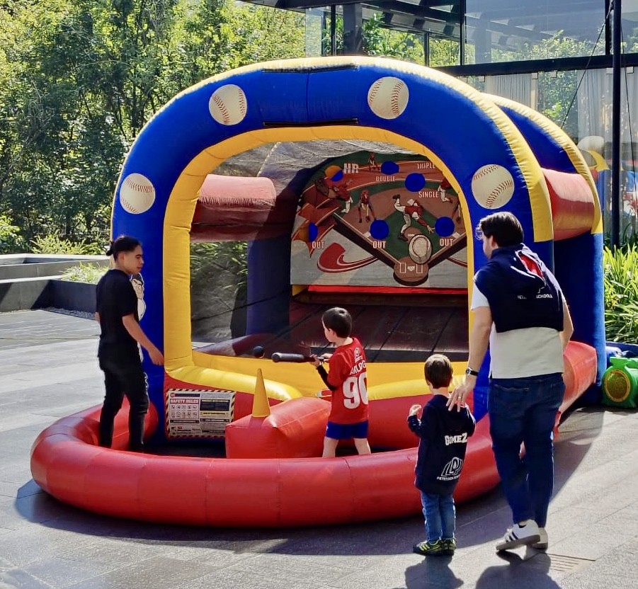 Juega en dos modalidades: batea las pelotas hacia los orificios del inflable demostrando tu swing, o lánzalas con la mano como pitcher profesional buscando la máxima precisión. Cada orificio tiene un valor de puntos diferente según su dificultad. Gana quien acumule más puntos ya sea con batazos certeros o lanzamientos perfectos.