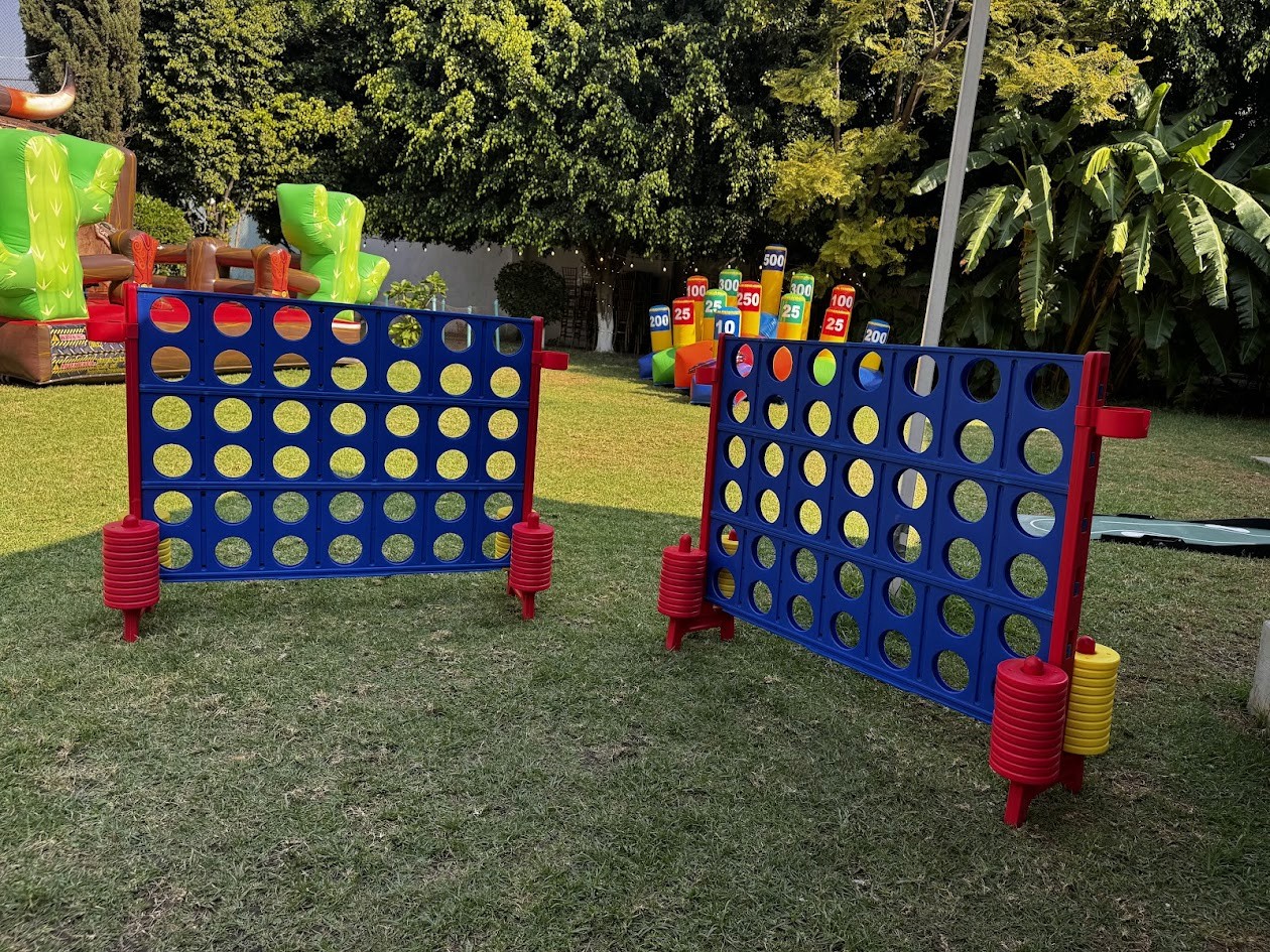 Deja caer fichas gigantes de colores por las ranuras del tablero vertical intentando formar una línea de cuatro fichas consecutivas antes que tu oponente. Puedes ganar conectando cuatro en horizontal, vertical o diagonal mientras bloqueas estratégicamente los intentos de tu rival. El juego clásico de estrategia se transforma en competencia física donde cada ficha pesa y cada decisión puede cambiar el resultado.