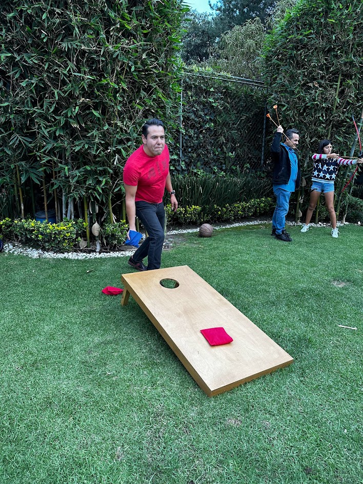 Lanza las bolsitas de frijoles hacia los tableros inclinados intentando meterlas por el agujero para obtener la mayor puntuación, o al menos aterrizar sobre la superficie para sumar puntos. El juego incluye dos tableros completos que permiten competencias uno contra uno o por equipos, donde cada bolsa en el hoyo vale más puntos que las que quedan sobre el tablero. Un clásico atemporal que combina puntería, técnica de lanzamiento y estrategia para bloquear a tus rivales mientras acumulas el puntaje necesario para ganar.