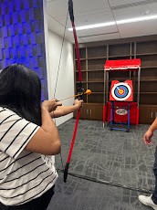 Tensa el arco, apunta cuidadosamente y dispara las flechas con ventosa hacia el tablero de diana intentando acertar en el centro para sumar los puntos más altos. Cada anillo concéntrico tiene un valor diferente, y la técnica de tensado y liberación determina la precisión de tu tiro. Una competencia de arquería segura donde concentración y pulso firme son la clave para vencer a tu rival.