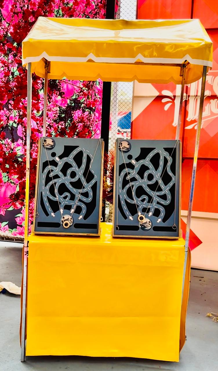 Jala las cuerdas laterales para inclinar el tablero y guiar la canica a través del laberinto lleno de trampas sin que caiga en los agujeros mortales que la eliminan. Debes coordinar los movimientos para sortear obstáculos y alcanzar la meta antes que el equipo rival. Un juego de coordinación y paciencia donde un movimiento brusco puede terminar tu recorrido en segundos.