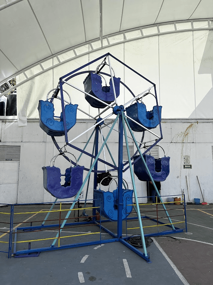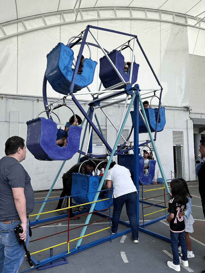 Elévate en las canastillas coloridas de esta rueda de la fortuna infantil que gira suavemente alcanzando alturas moderadas perfectas para los más pequeños. Cada revolución ofrece una vista panorámica del evento mientras disfrutas del movimiento circular constante y seguro. Una versión a escala reducida del clásico juego de feria adaptada para edades tempranas con menor altura y velocidad controlada.