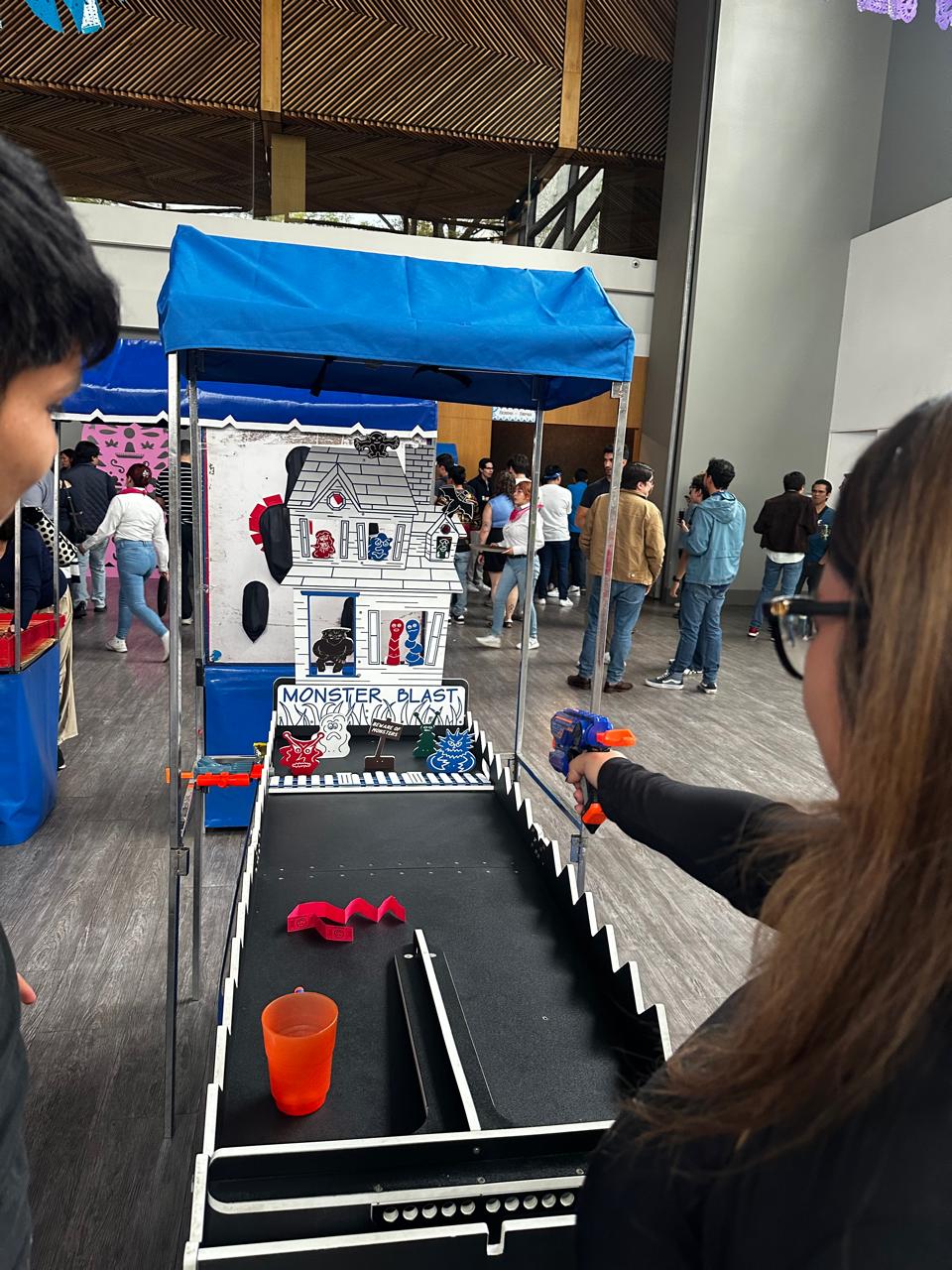 Usa la pistola NERF integrada para disparar dardos y derribar a los monstruos que acechan en las ventanas y el jardín de la casa embrujada del tablero. Cada monstruo derribado suma puntos mientras intentas limpiar toda la casa de criaturas espeluznantes antes de quedarte sin dardos. Una cacería de monstruos donde puntería certera, reflejos rápidos y nervios de acero son necesarios para convertirte en el cazador definitivo.